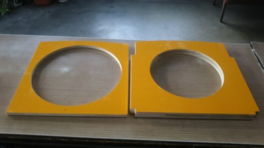 加工:塗装コンパネ 穴加工 斜めカット Rカット